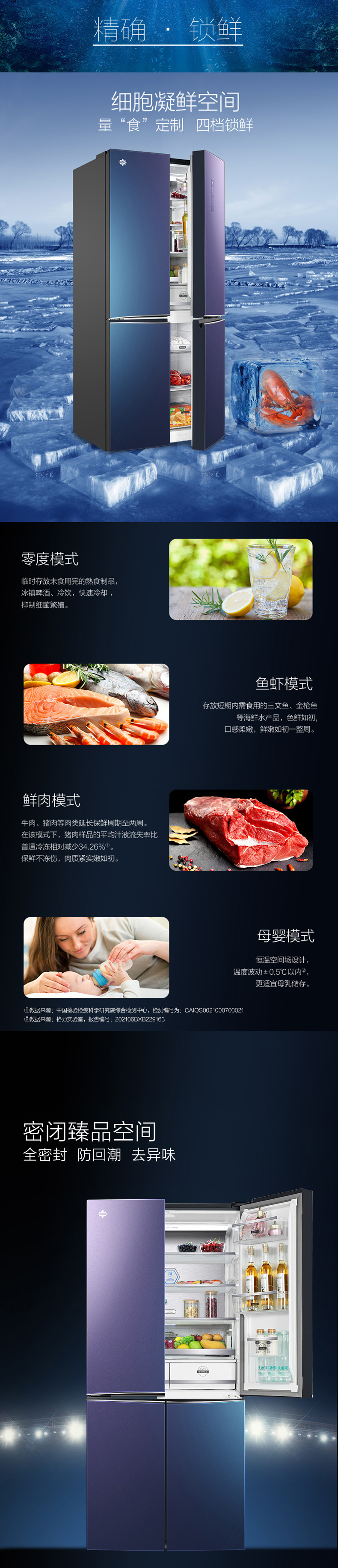針對每種食材進行精細化分區,定制專屬保鮮艙,涵蓋肉類保鮮、果蔬保鮮、母乳儲存、干貨儲存以及除菌凈味五個維度,確保每一件食材的新鮮儲存