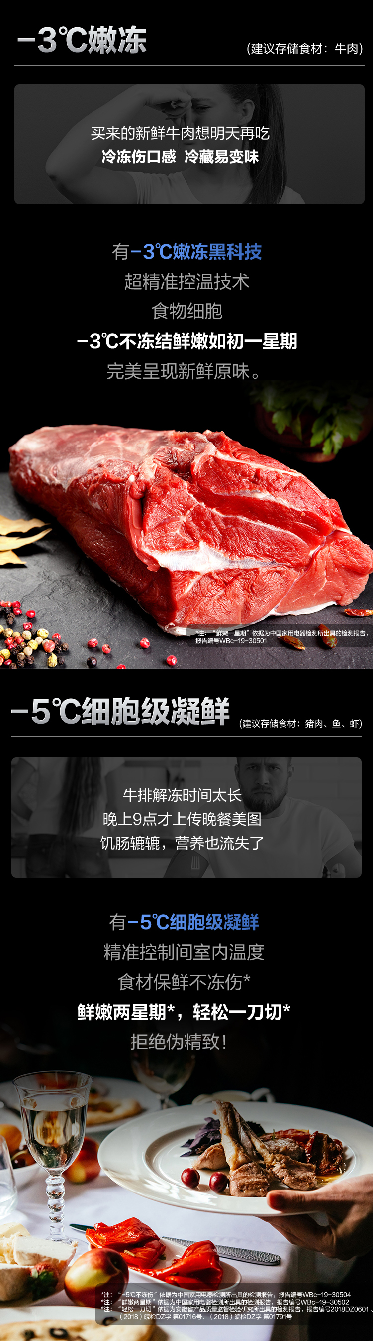 搭載-5℃嫩凍凝鮮科技,鮮嫩兩星期,輕松一刀切。Plasma等離子除菌凈味,除菌保鮮,長(zhǎng)久新鮮。4檔保鮮模式,多重角色時(shí)刻新鮮。