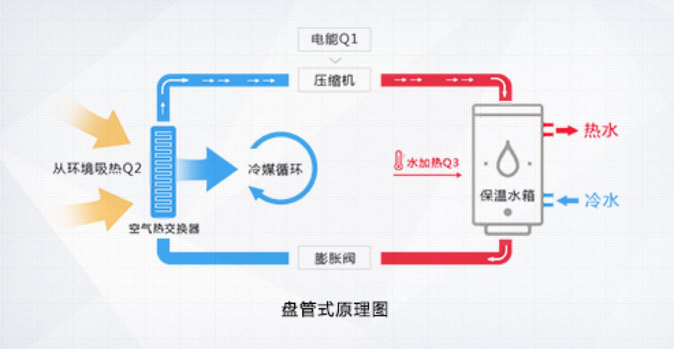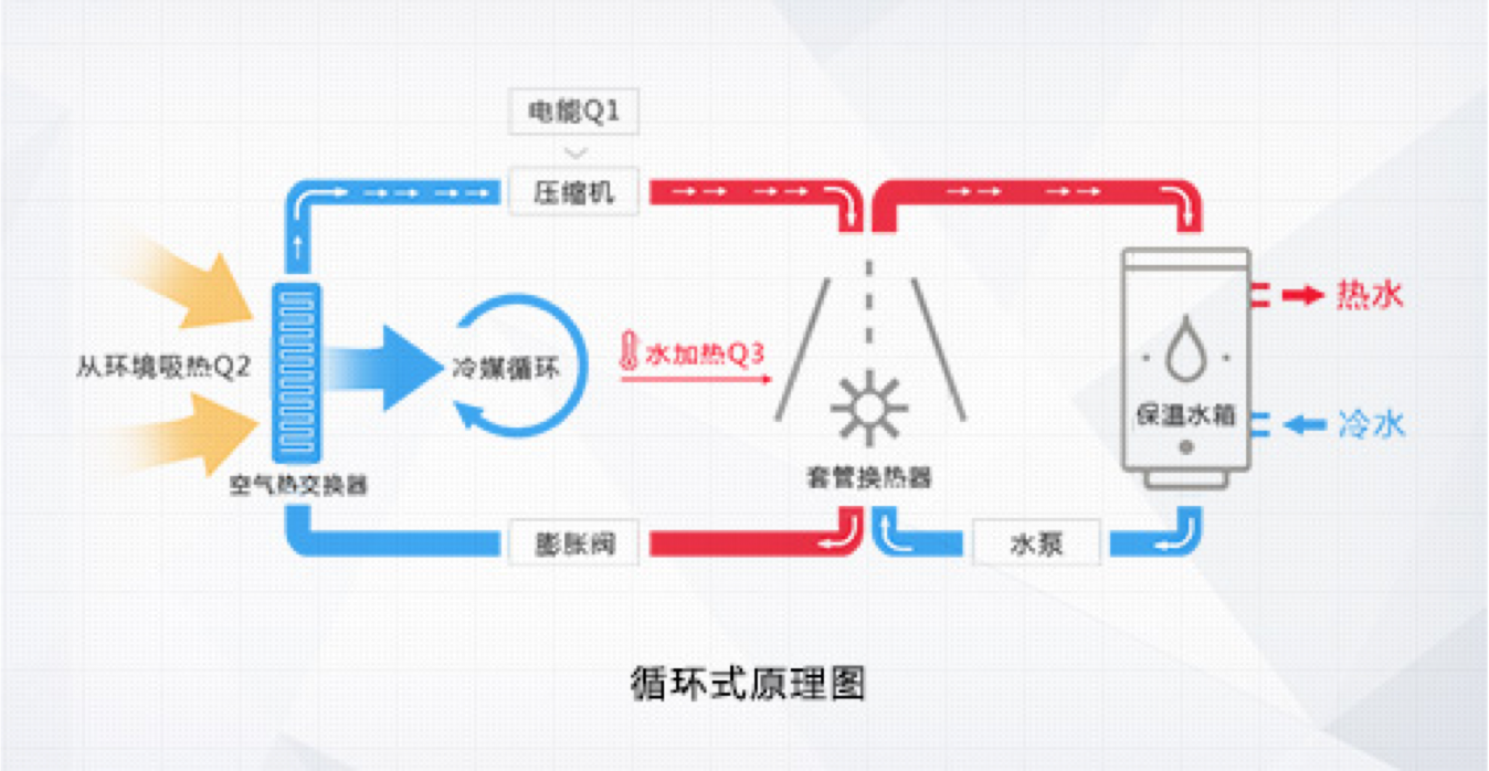 格力空氣能熱水器,傳承空調(diào)核心科技,以消耗一部分電能為補償,通過熱力循環(huán),從周圍環(huán)境的低品位能源(空氣源)取得熱量,通過壓縮機將其輸送至冷凝器,釋放給水箱內(nèi)的水將其加熱。它的工作原理與空調(diào)制熱時的原理相類似,只是空調(diào)是 從自然環(huán)境中吸取熱量,供給室內(nèi)空氣,而空氣能熱水器是以這部分熱量加熱生活熱水,其能效比是電熱水器的4倍,是燃?xì)鉄崴鞯?倍,是太陽能熱水器的近2倍,是一種新型的高效、節(jié)能、環(huán)保的熱水器產(chǎn)品。一度電的付出,4倍熱量的收獲!